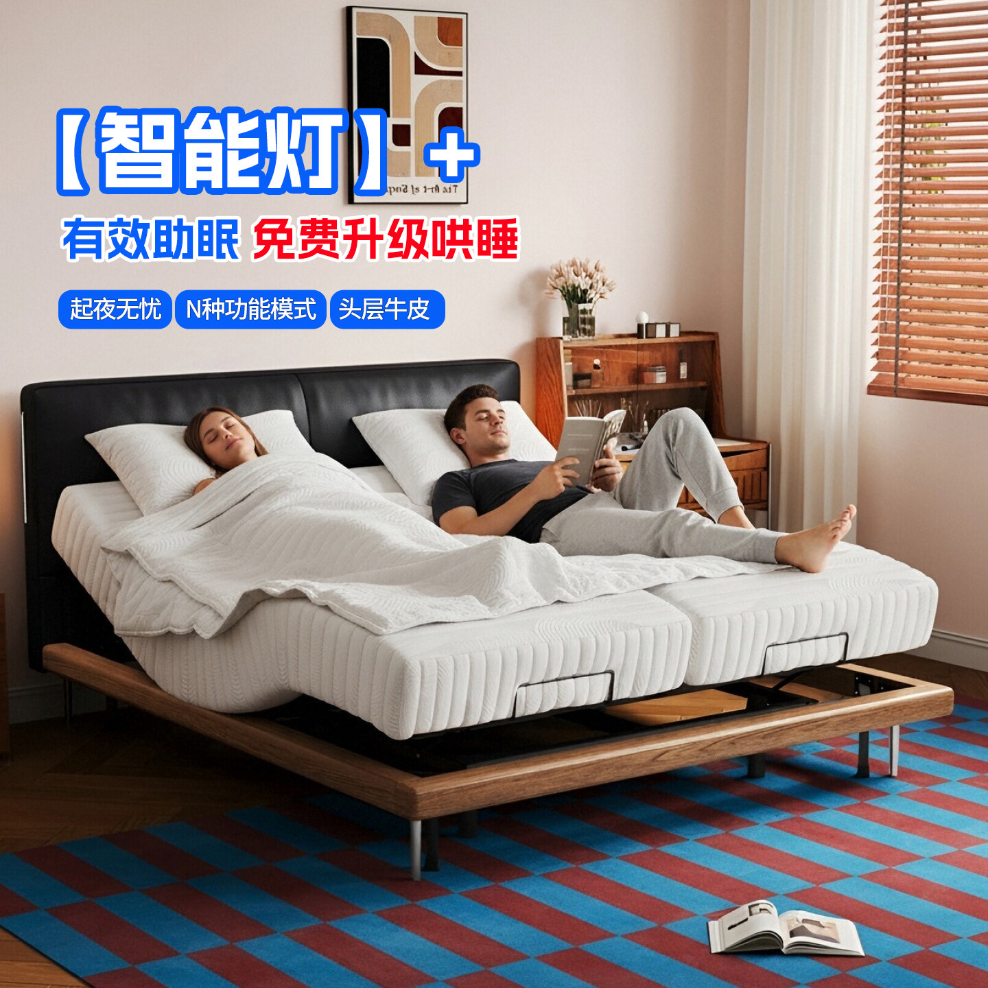 新中式智能电动真皮伯特床全自动升降按摩语音多功能双人互不打扰