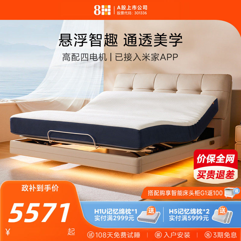 8H悬浮智能电动床真皮多功能遥控升降床双人床家用已接入米家APP