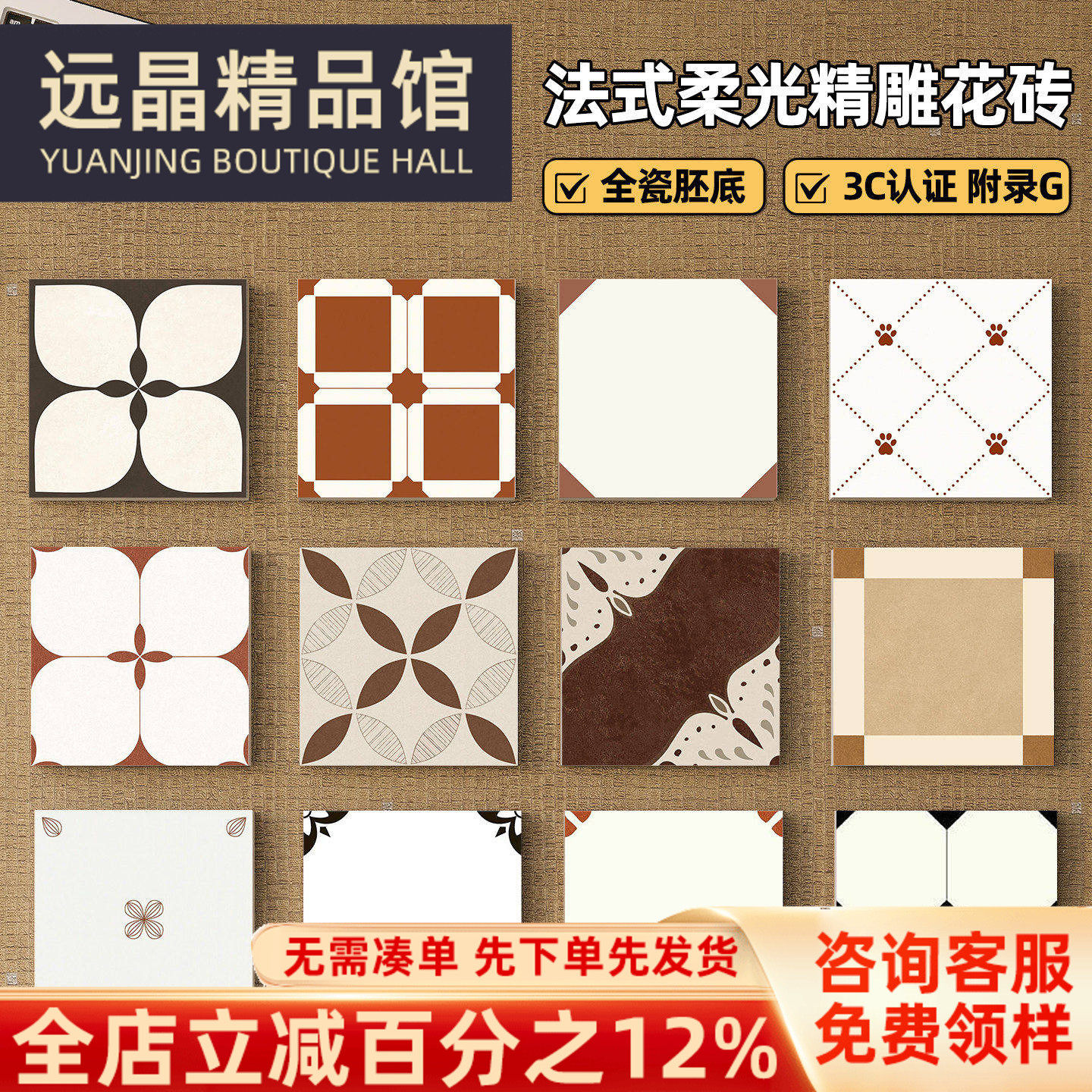 400x400法式柔光小花砖全瓷卫生间瓷砖厨房墙砖中古风精雕小地砖