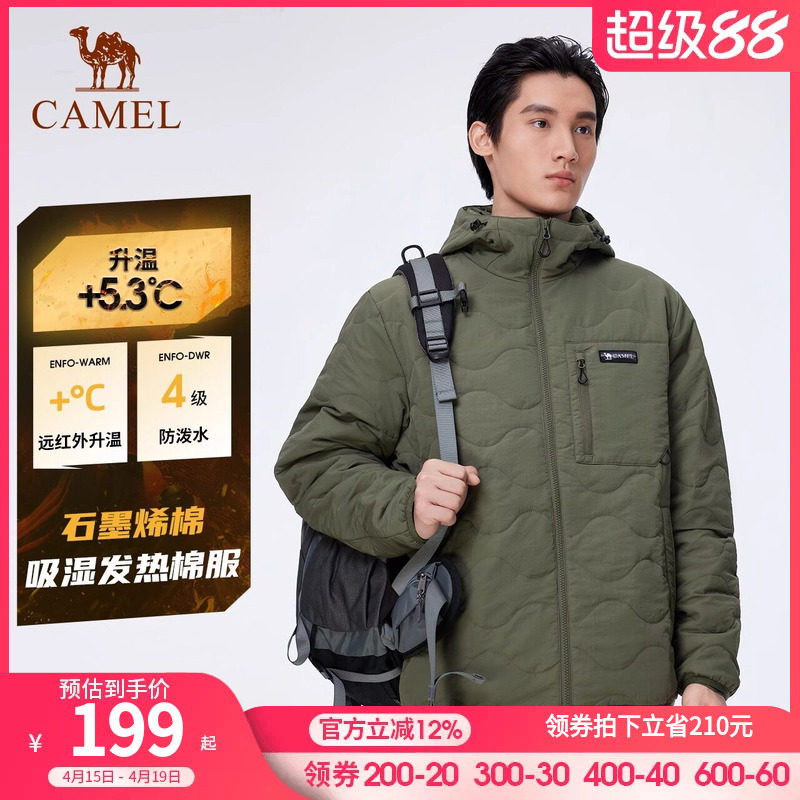 【石墨烯】骆驼男装冬季男款加厚棉袄外套中长款宽松连帽保暖棉服