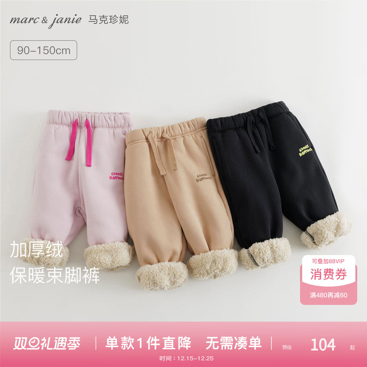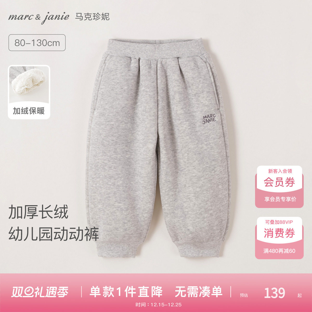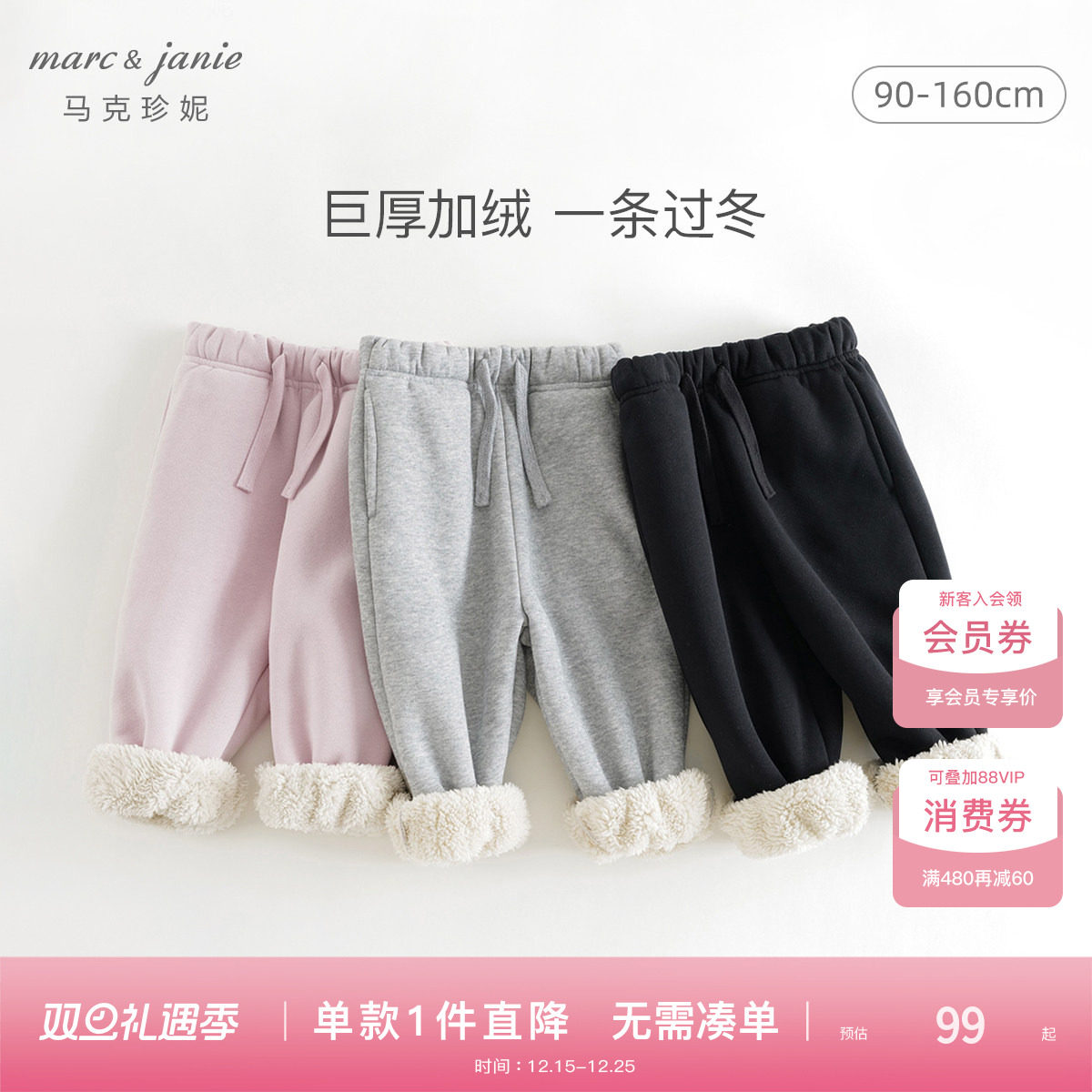 [加厚长绒]马克珍妮保暖百搭男女童运动束脚裤宝宝裤子冬装551789