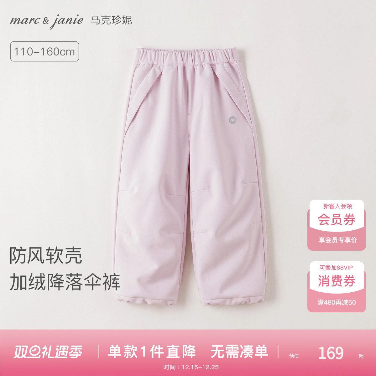 [加绒软壳裤]马克珍妮男女童防风降落伞裤儿童裤子秋冬新款551272