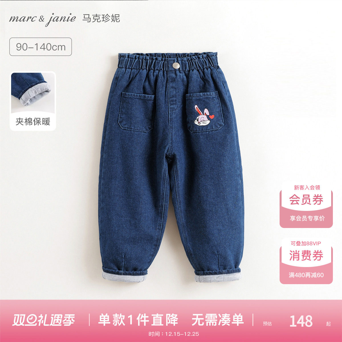 [夹棉加厚]马克珍妮女童保暖牛仔裤儿童裤子宝宝萝卜裤冬装552111