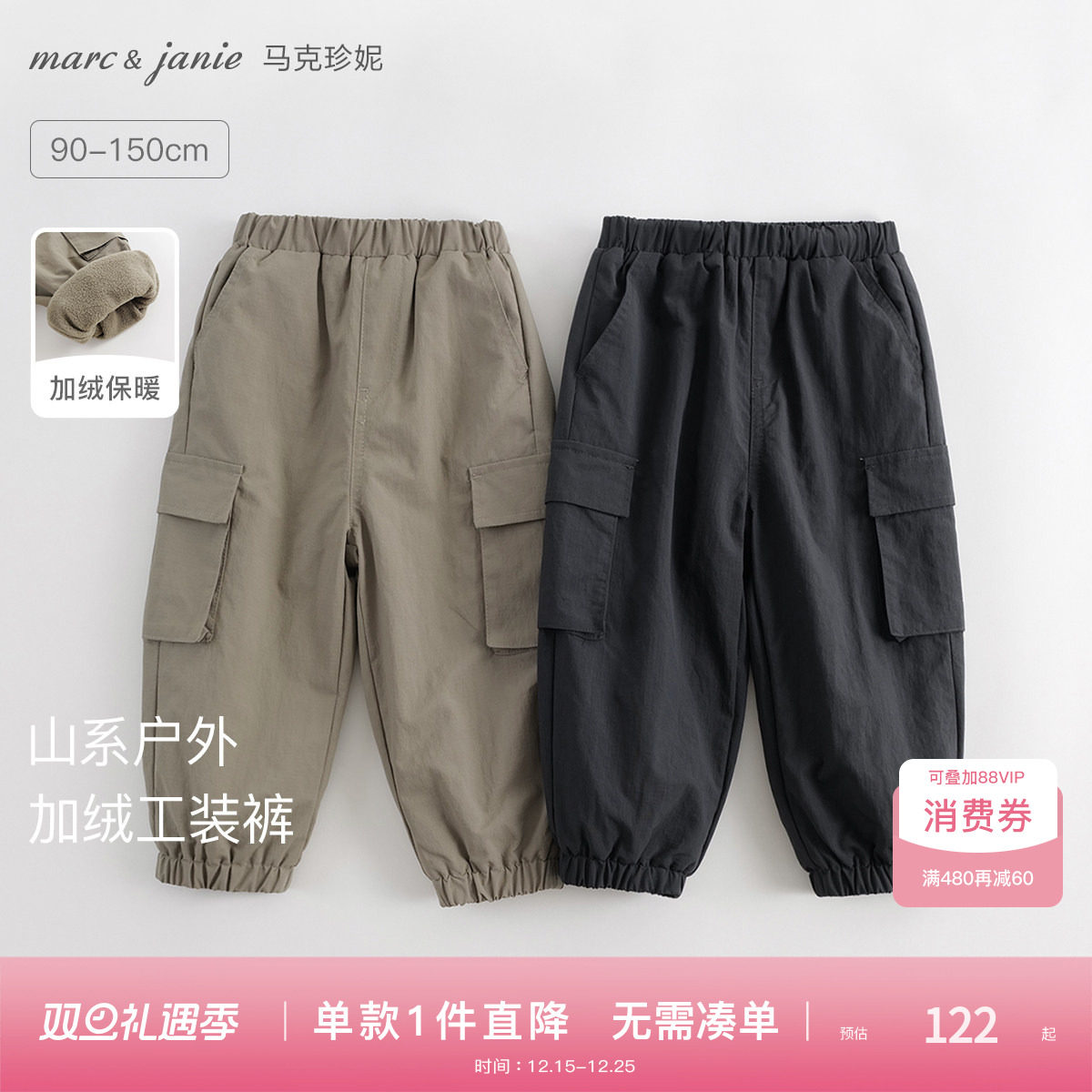 [加绒]马克珍妮男童山系户外三防工装裤束脚裤冬装新款裤子241381