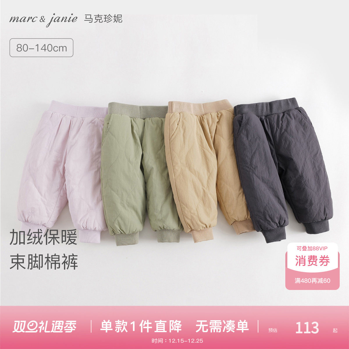 马克珍妮男女童轻暖锁温无缝羽绒裤宝宝裤子2025年秋冬新款550985