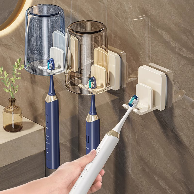 多巴胺牙刷置物架家用壁挂式漱口杯免打孔电动牙刷杯架卫生间浴室