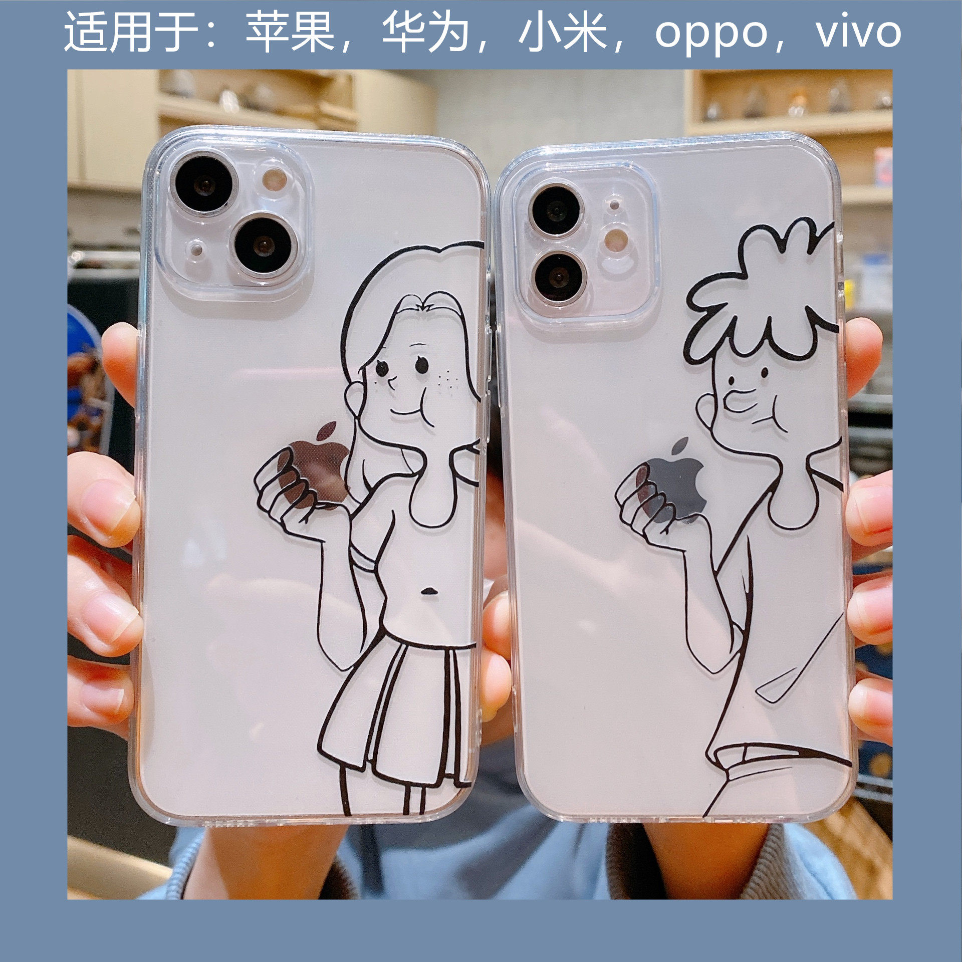 创意吃苹果12手机壳情侣男女孩适用iphoneXs max透明软壳16防摔可爱6splus/8P保护套个性15promax硅胶13mini7