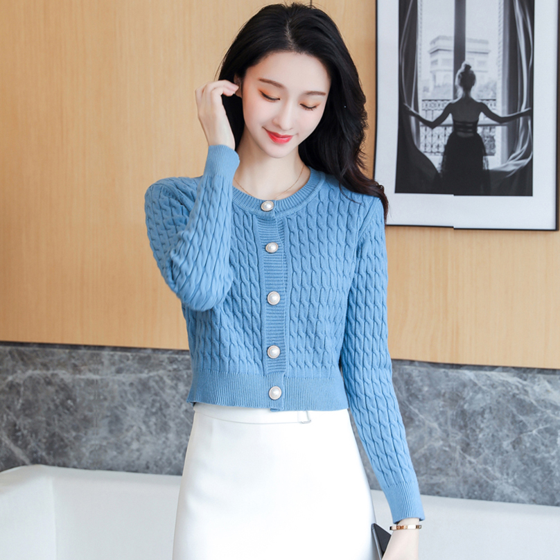 2025早秋季新款小个子针织圆领毛衣开衫短款宽松长袖小款外套外穿
