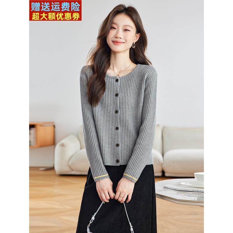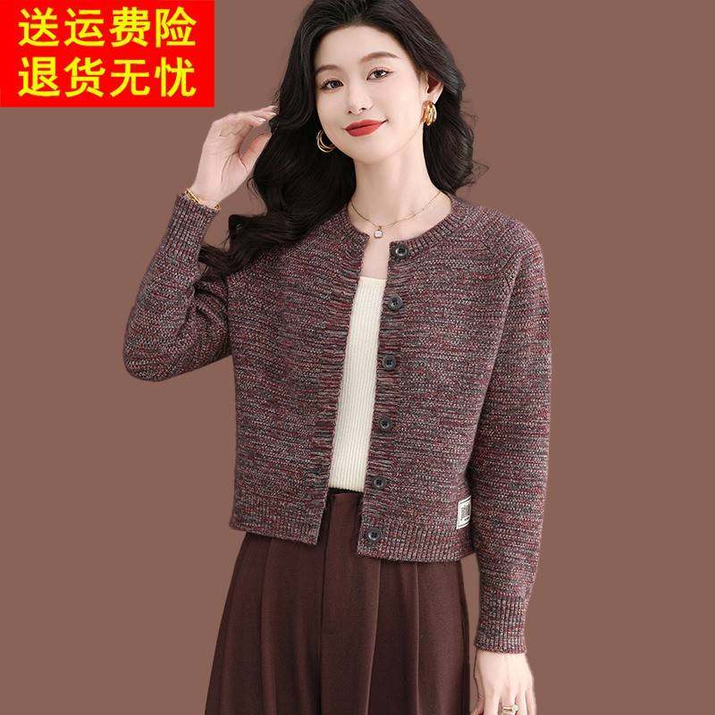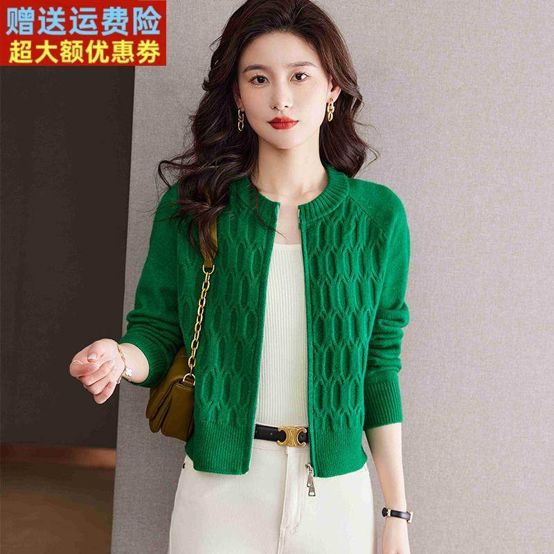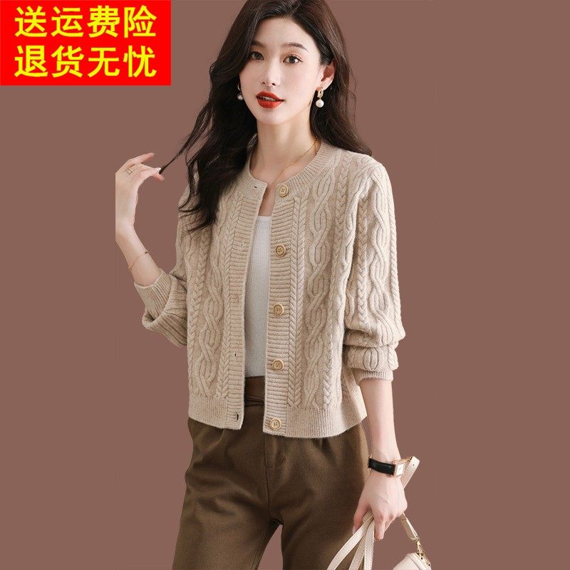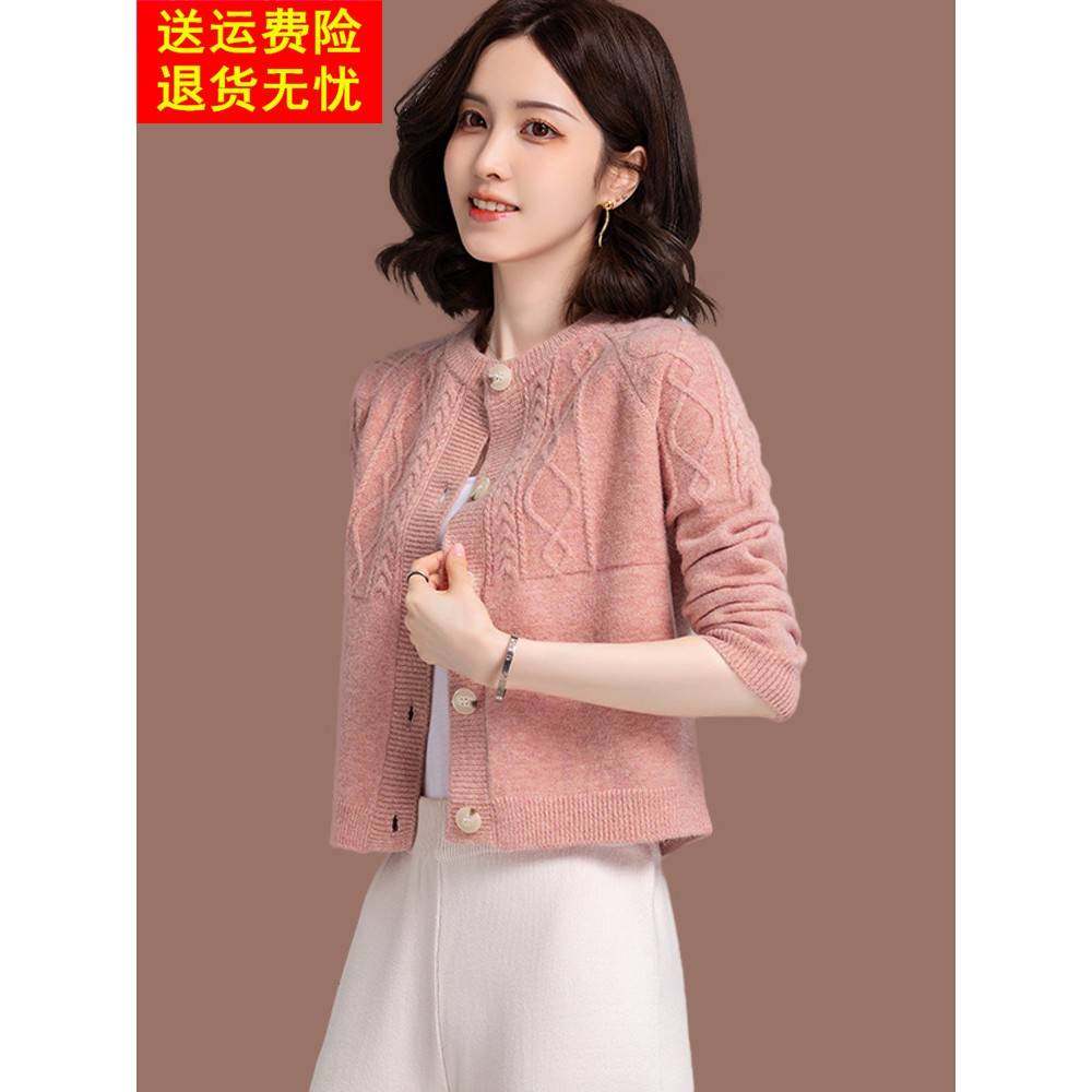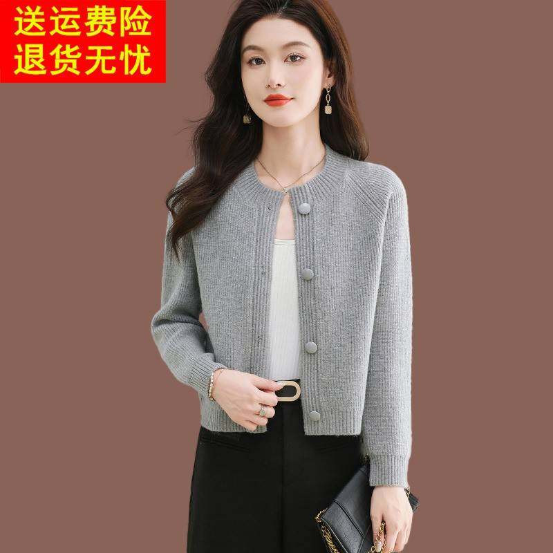 高级羊毛衫女2025秋季短款宽松圆领针织外套时尚小款外搭针织开衫