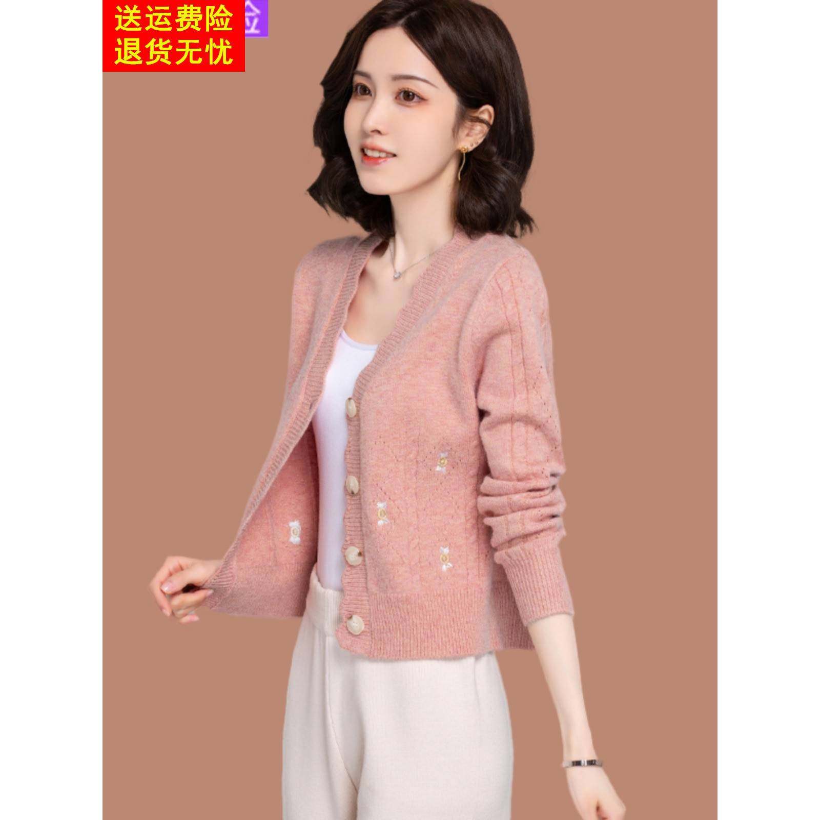羊毛衫小款高腰短款毛衣外套女春装新款上衣时尚配裙外搭针织开衫