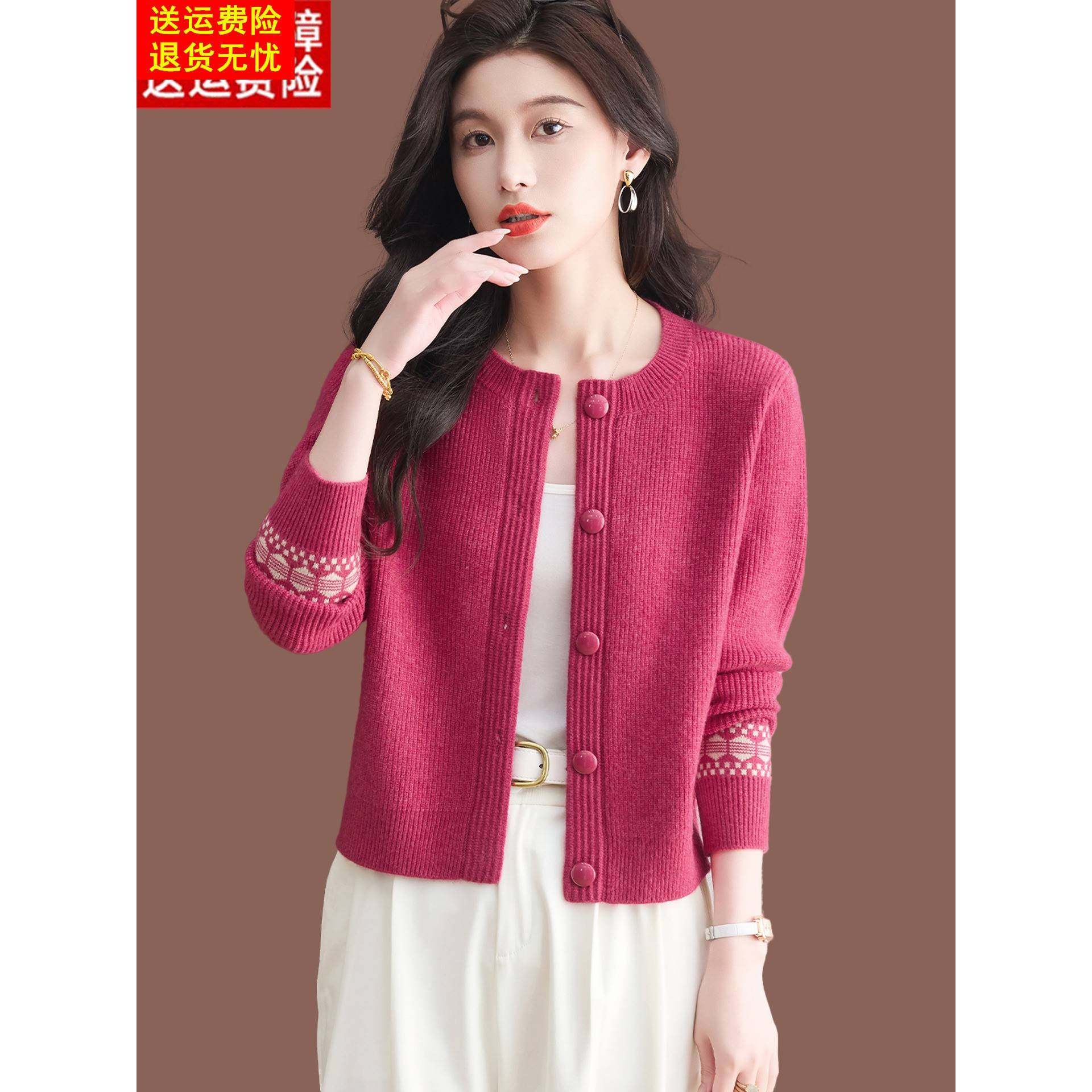 羊毛针织开衫外套女小款配裙子春秋新款洋派上衣短款红色毛衣外搭