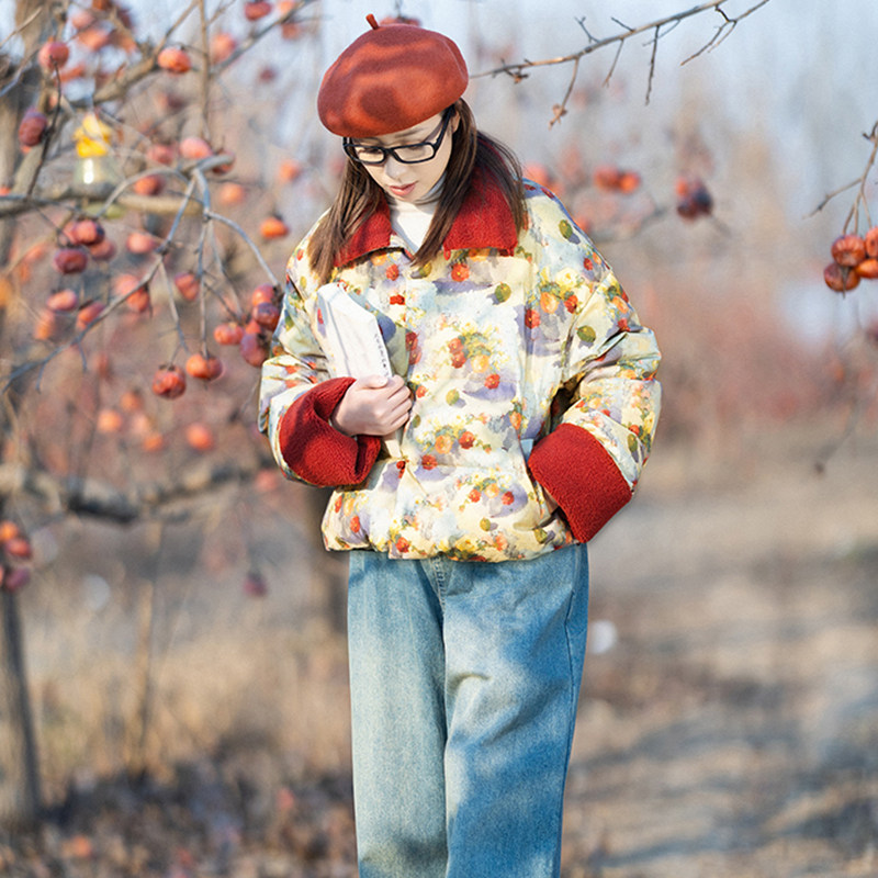 【爱如繁花】文艺印花小款羽绒服女2025冬季短款长袖白鸭绒花外套
