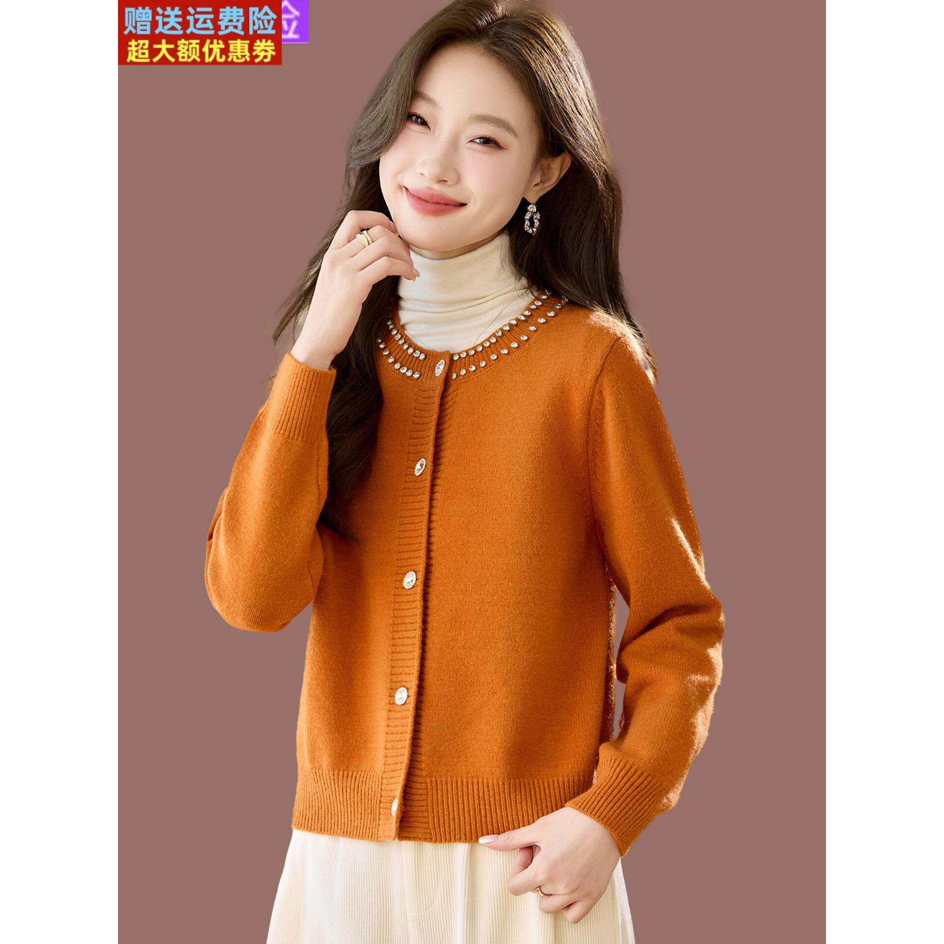 羊毛衫女高腰小款针织开衫毛衣秋冬新款配裙子外套洋气外搭小个子