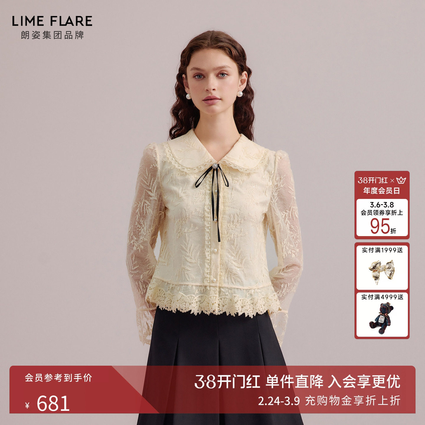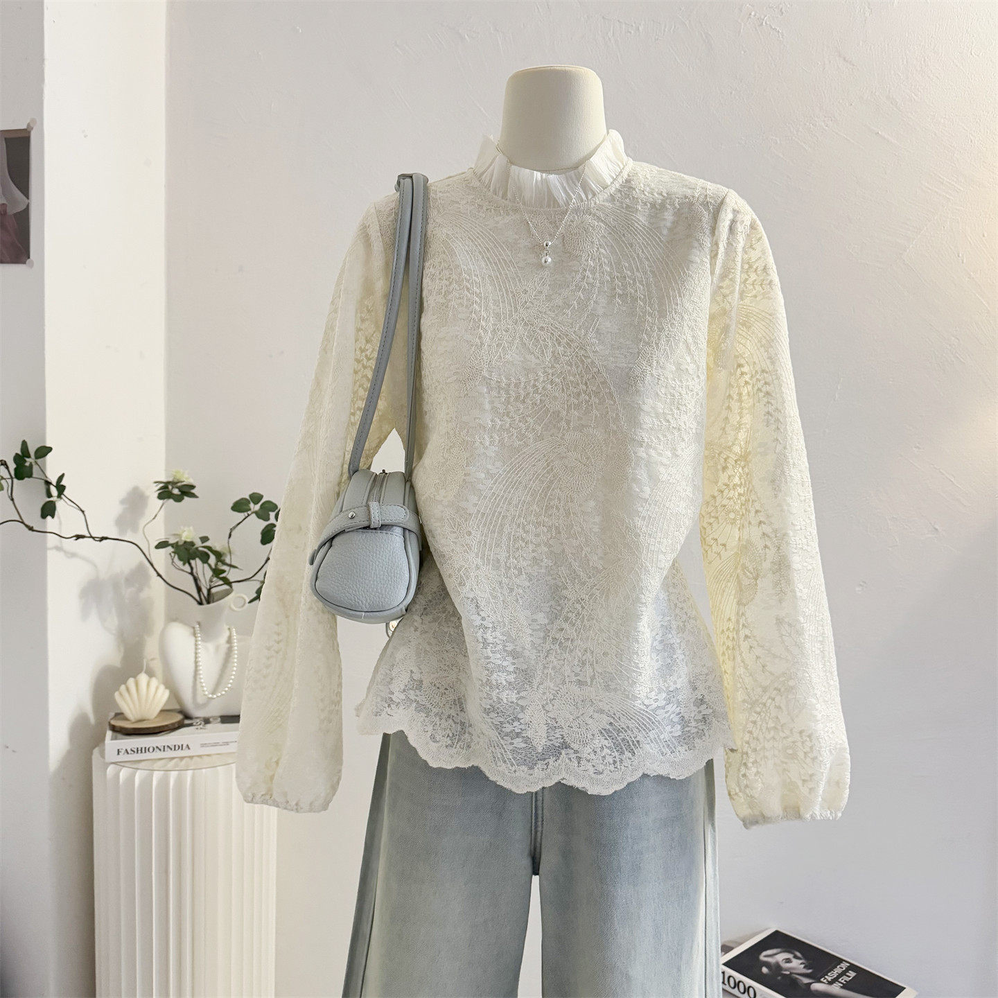 A'1st编辑店 塞纳午后氛围感重工刺绣立体蕾丝衬衫叠穿打底蕾丝衫