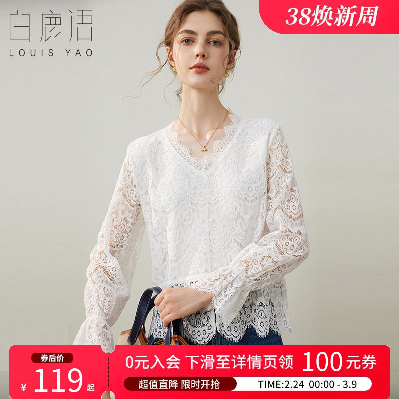 白鹿语气质镂空蕾丝衬衫2025春季新款时尚v领套头长袖女式衬衣