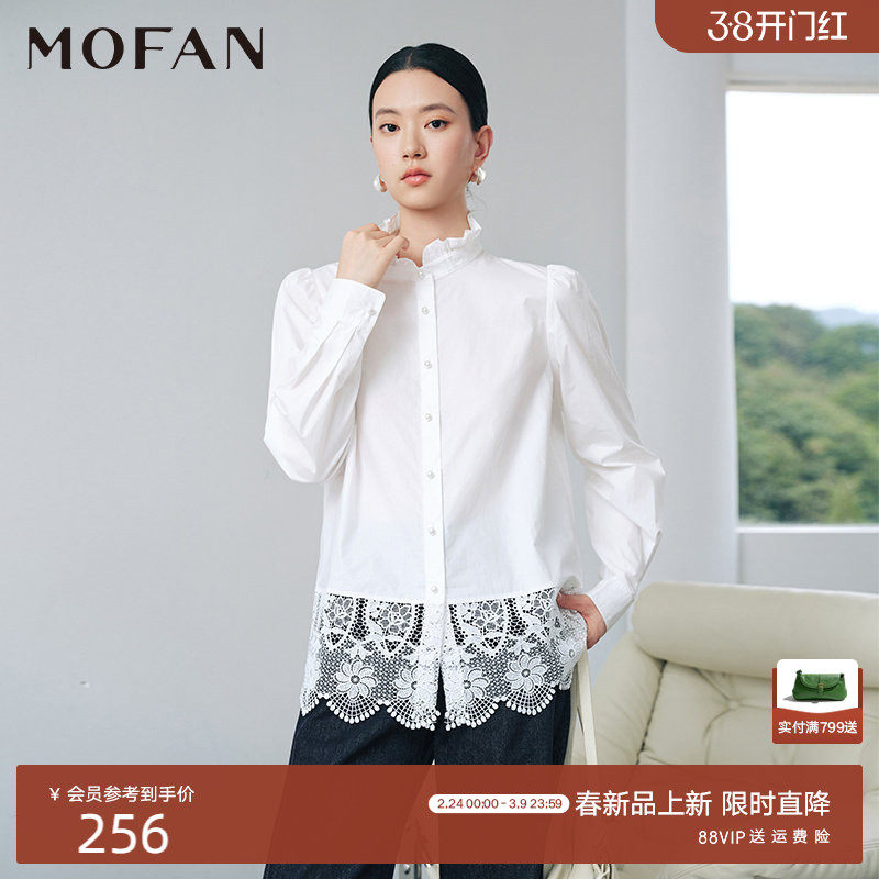 甜美木耳边立领蕾丝衬衫女MOFAN摩凡2026春新款百搭休闲衬衣 白色