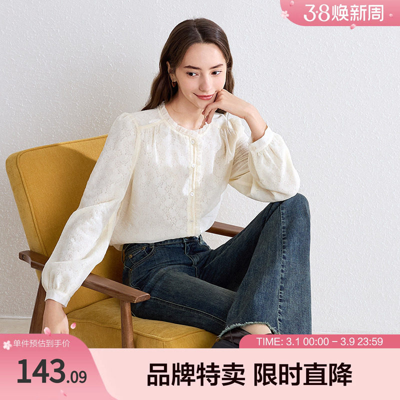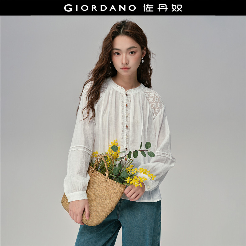 设计师款佐丹奴2026年春肌理拼接蕾丝宽松法式衬衫女长袖18345220