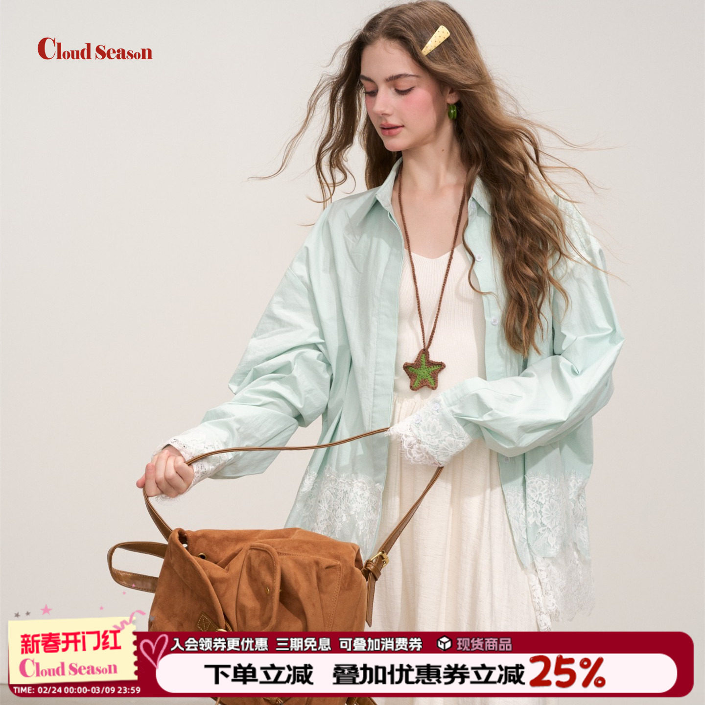 CLOUDSEASON蔚蓝星海蕾丝衬衫上衣女衬衫女设计感小众衬衫女秋