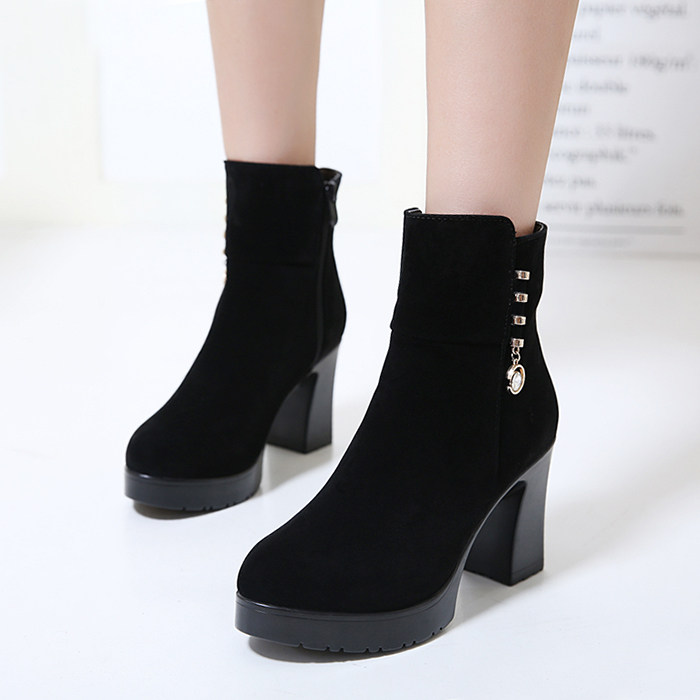 磨砂皮短靴女粗跟高跟[第4名]