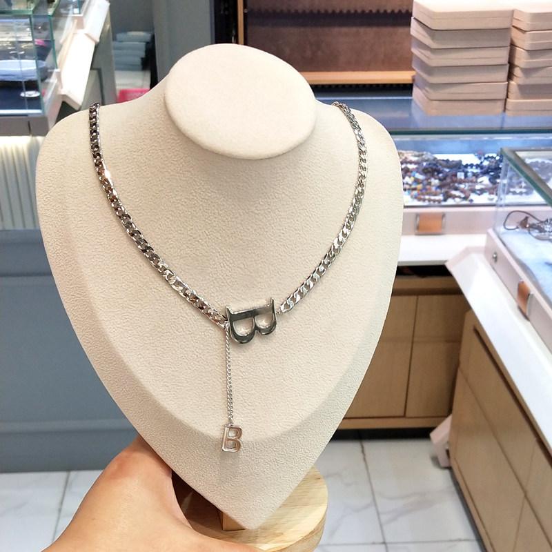 防过敏不掉色时尚洋气B字母流苏短款项链毛衣链高档卫衣T恤配饰品
