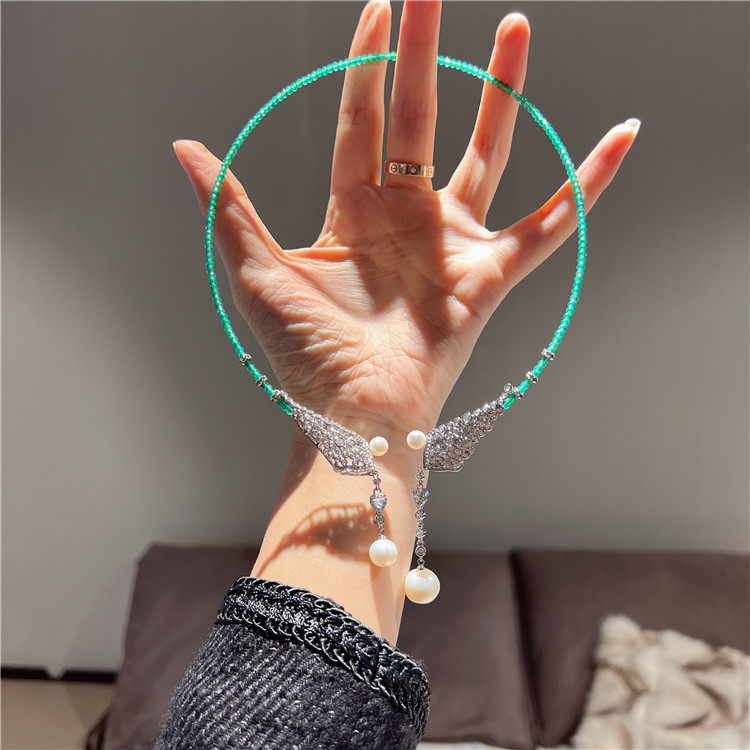 新款天然珍珠绿玛瑙项链小众设计锁骨链精致项圈短款毛衣链女气质