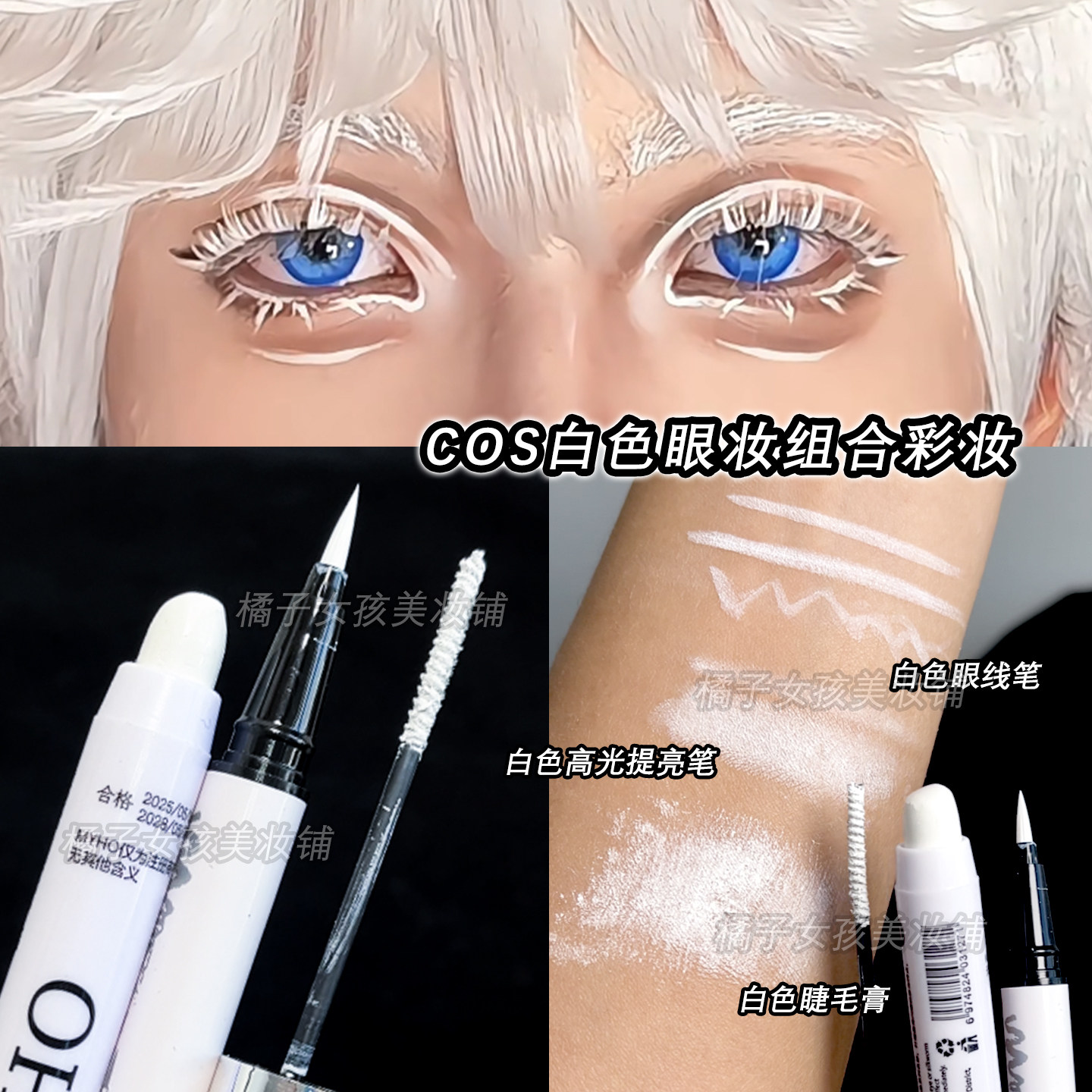 正品cos白色眼妆组合!哑光白眼线笔高光笔睫毛膏防水持久不晕染初