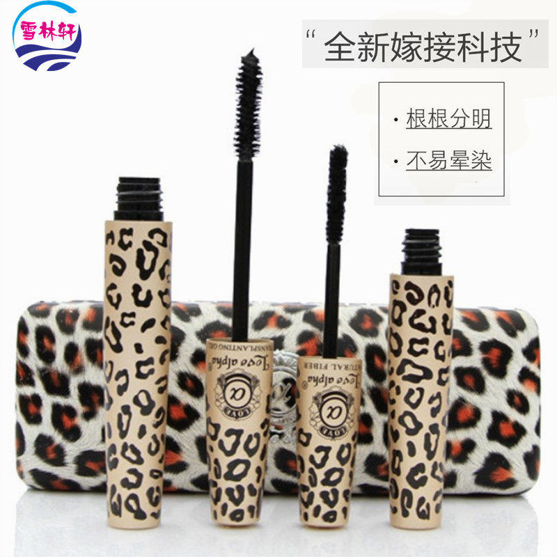 豹纹黑纤维嫁接睫毛膏组合套装纤长浓密卷翘不晕染防水拉长两支装