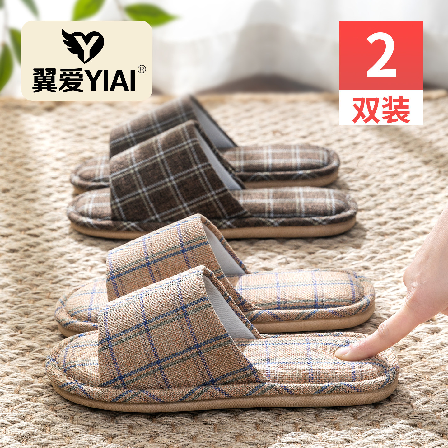 2双亚麻拖鞋女款男士夏季室内家居老人防滑地板棉麻布凉拖鞋家用
