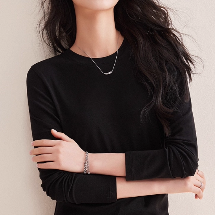 秋冬薄款针织打底衫女2025新款圆领软糯修身长袖内搭面膜t恤上衣