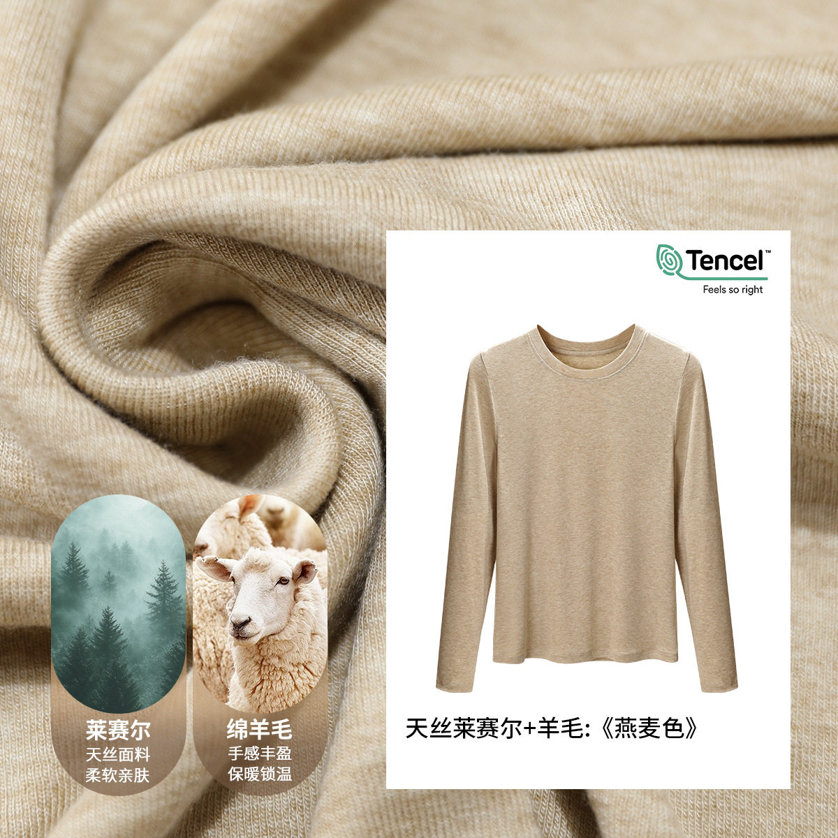 莱赛尔亲肤面膜T恤高比例天丝羊毛混纺极简百搭轻薄针织打底衫女