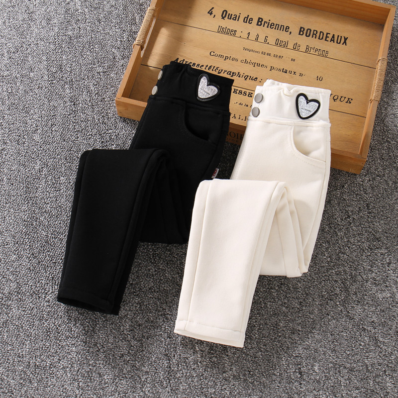 女童裤子外穿加绒冬黑色白色春秋款儿童牛仔弹力紧身打底铅笔小脚