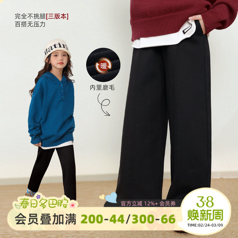 NORNOR陈大猪女童新款裤子冬季保暖好看休闲直筒铅笔儿童喇叭裤