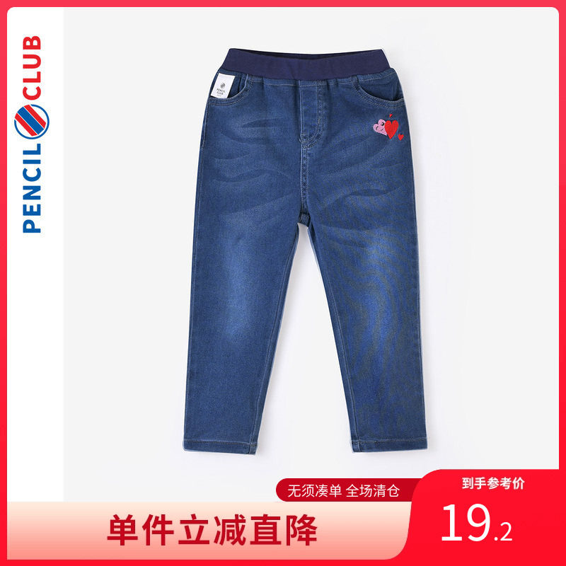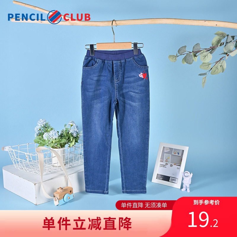 铅笔俱乐部童装女童牛仔裤2025春秋新款儿童长裤百搭女孩刺绣图案