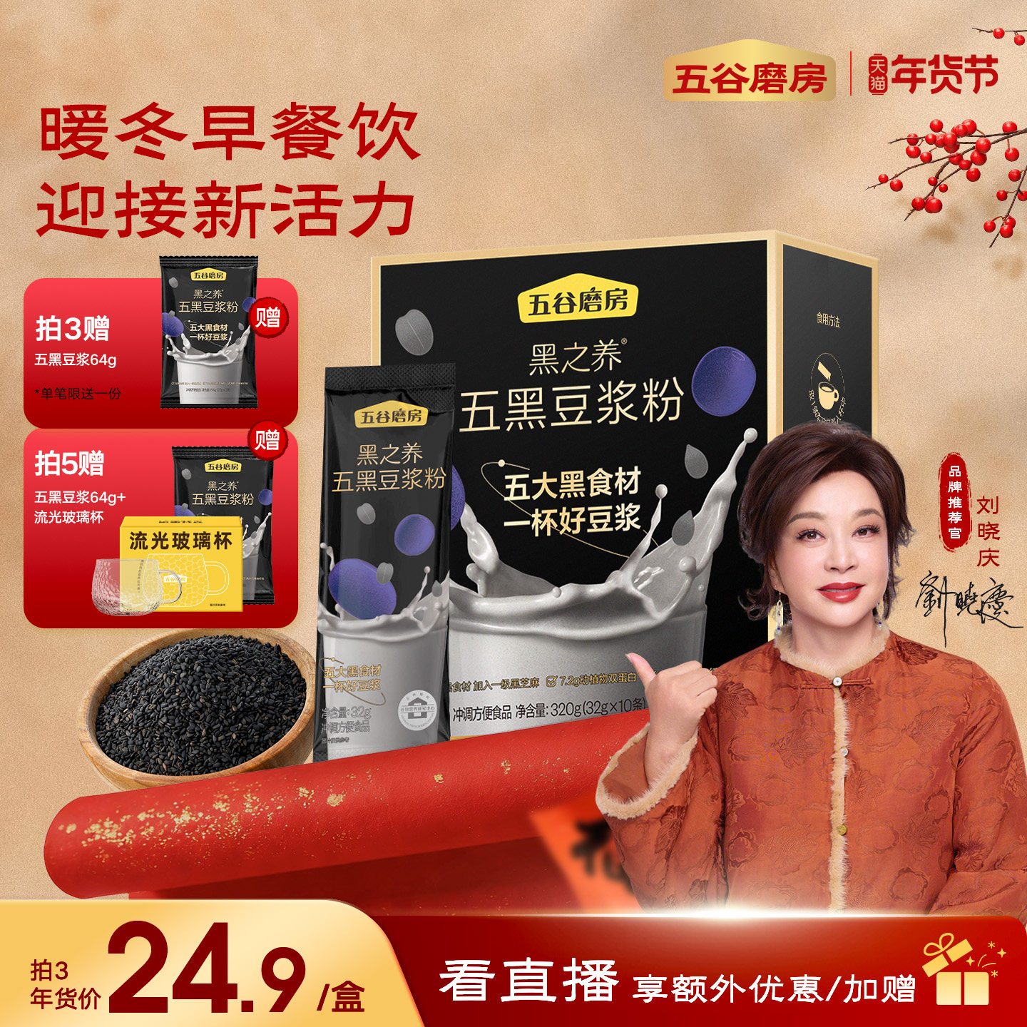 五谷磨房五黑豆浆粉320g盒装早餐小袋装冲饮豆浆即使健康营养早餐