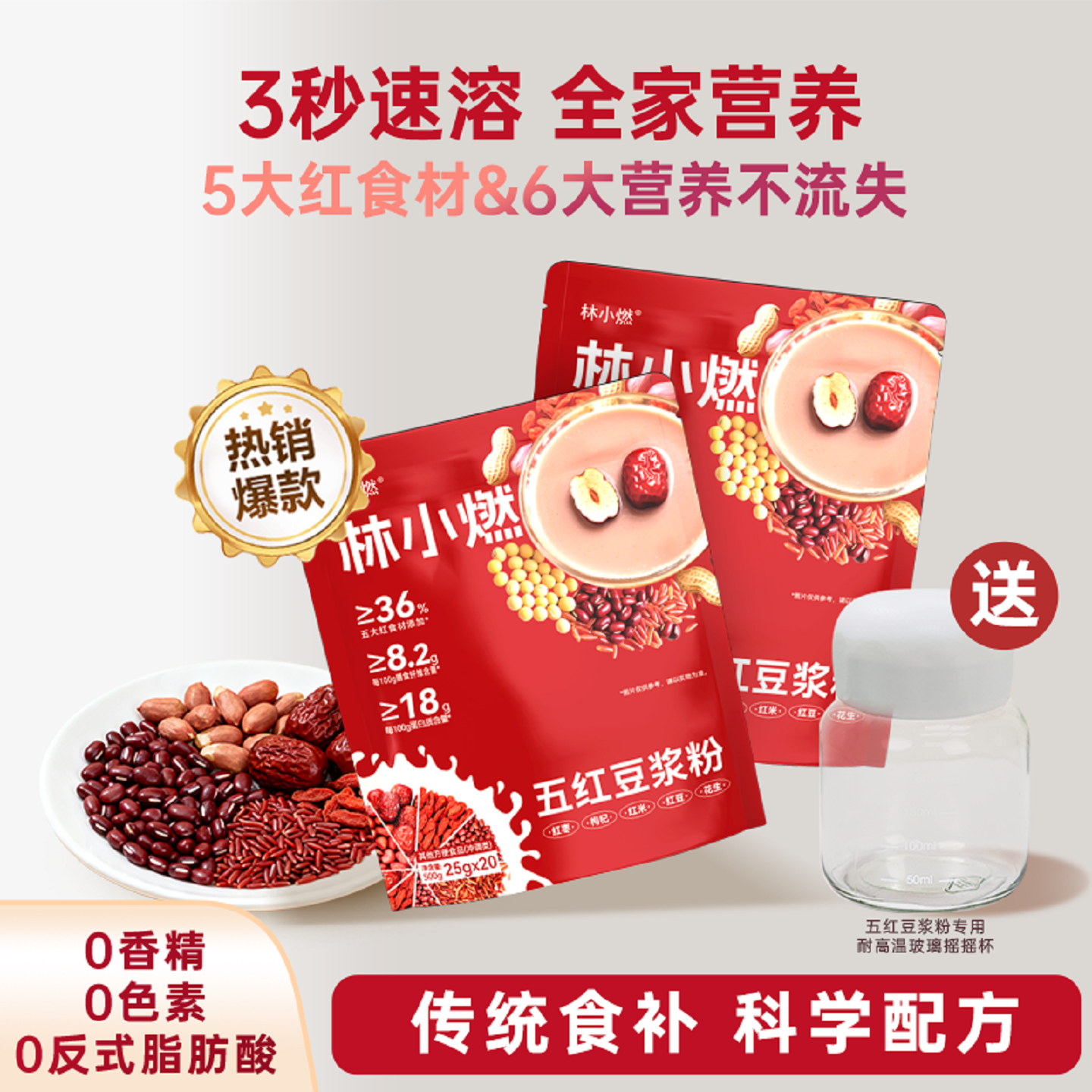 林小燃五红红枣豆浆粉高蛋白质高膳食纤维营养健康早餐速溶豆浆粉