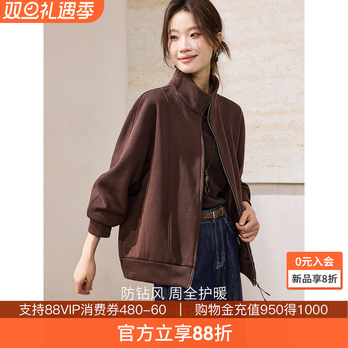 班尼路S&K系列立领加绒外套女2025秋冬季新款开衫卫衣可外穿上衣H