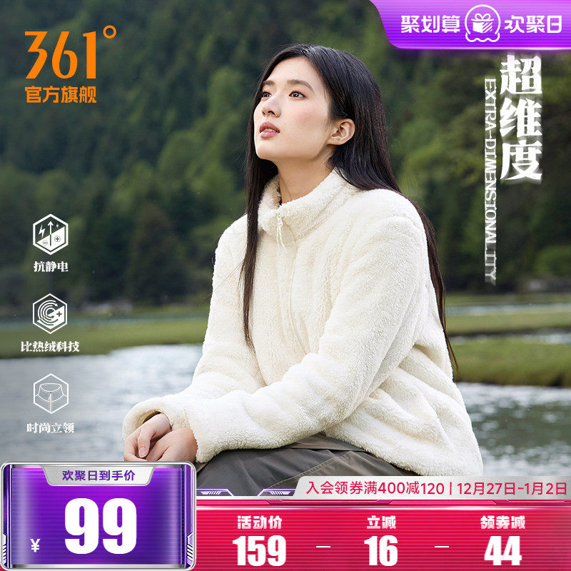 KHV真维斯白色加绒外套女2025秋冬新款修身摇粒绒冲锋衣内胆上衣