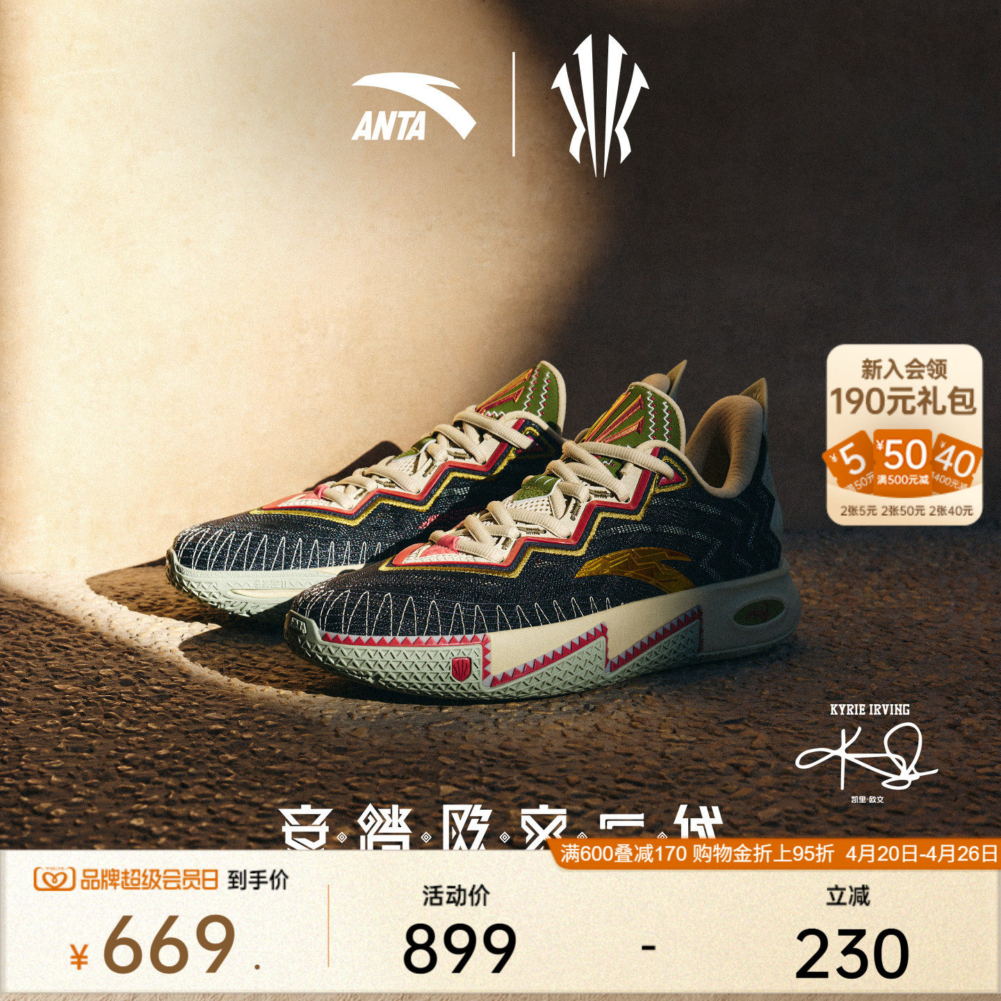 安踏KAI 2 凯里·欧文二代男子球场氮科技防滑耐磨实战低帮篮球鞋
