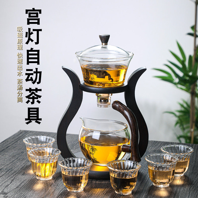 创意宫灯玻璃懒人功夫茶具套装家用透明磁吸出水半全自动冲泡茶器