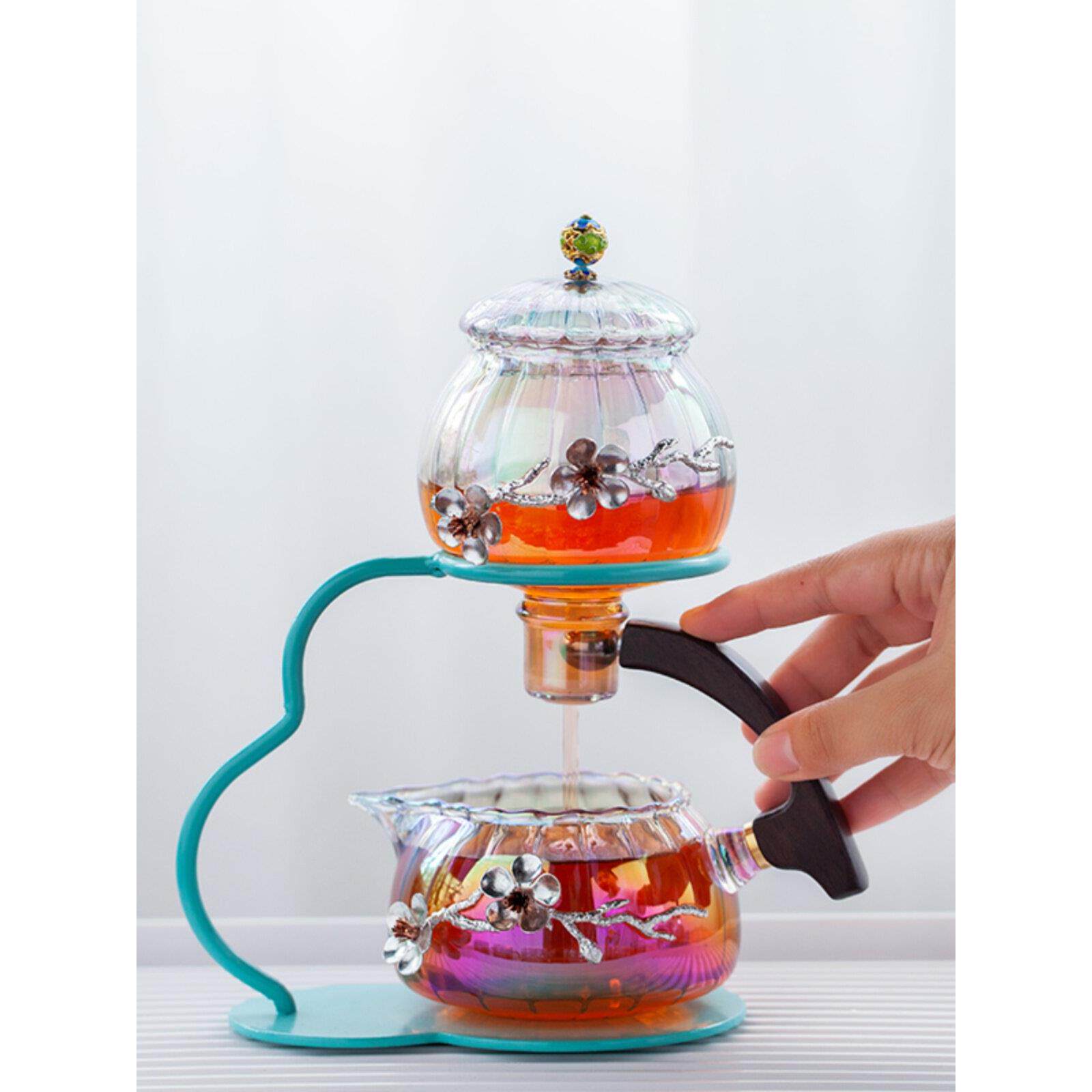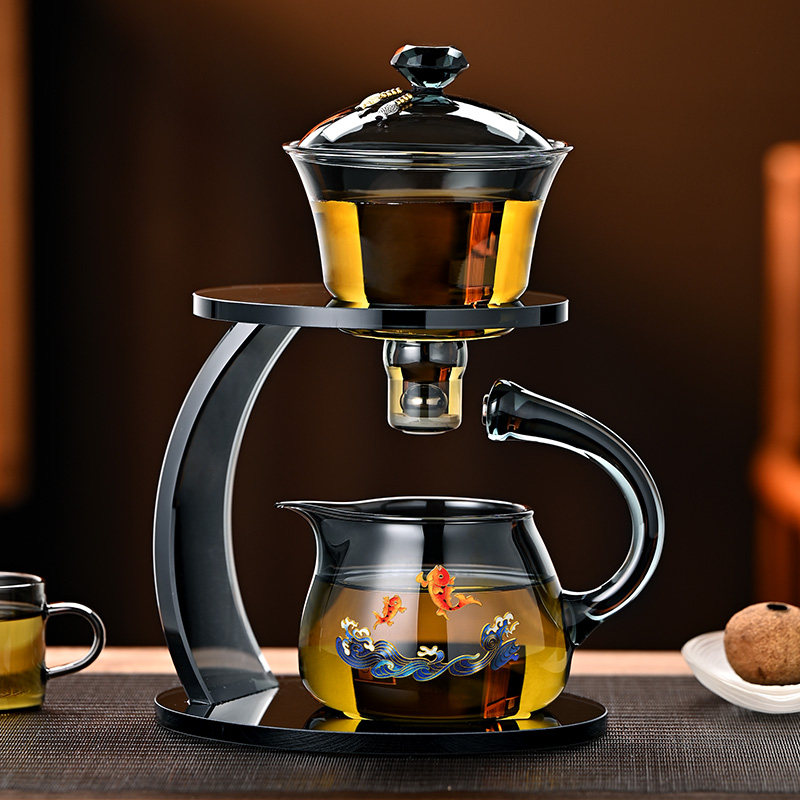 2025年送礼创意七彩玻璃懒人半全自动茶具功夫套装家用办公室泡茶