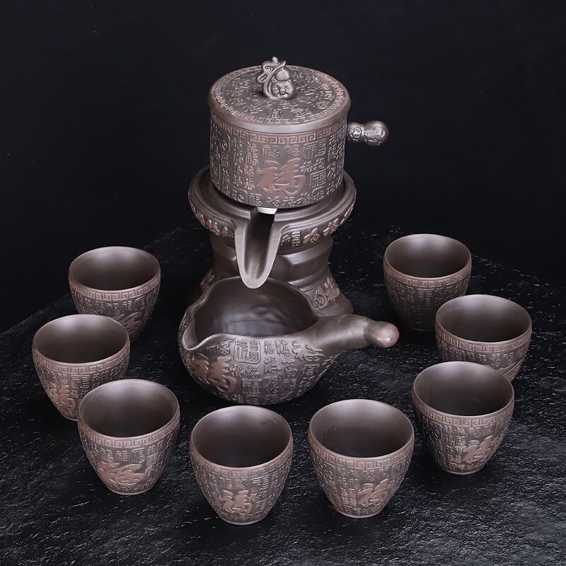 紫陶懒人冲茶器复古半全自动茶具套装家用中式旋转泡茶壶功夫茶杯