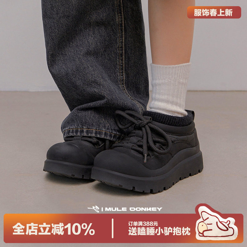 多嘴驴Donkey防滑雪地靴女冬季加绒加厚保暖增高防水黑色厚底棉鞋