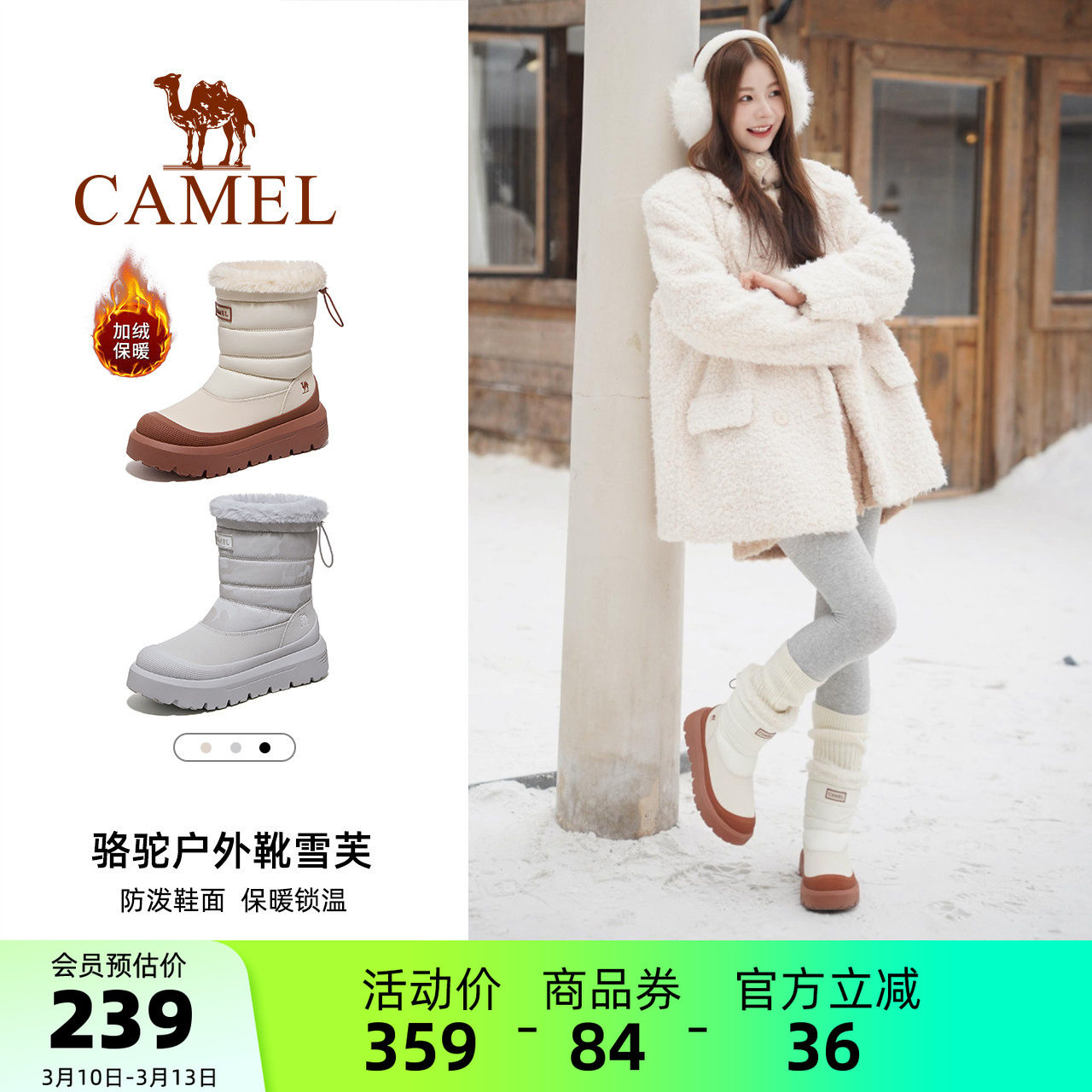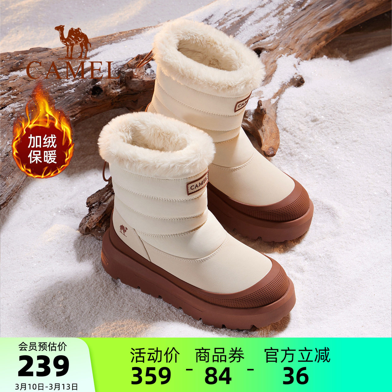 骆驼雪地靴防水防滑女鞋冬季鞋子加绒面包鞋厚底靴子加厚保暖棉鞋