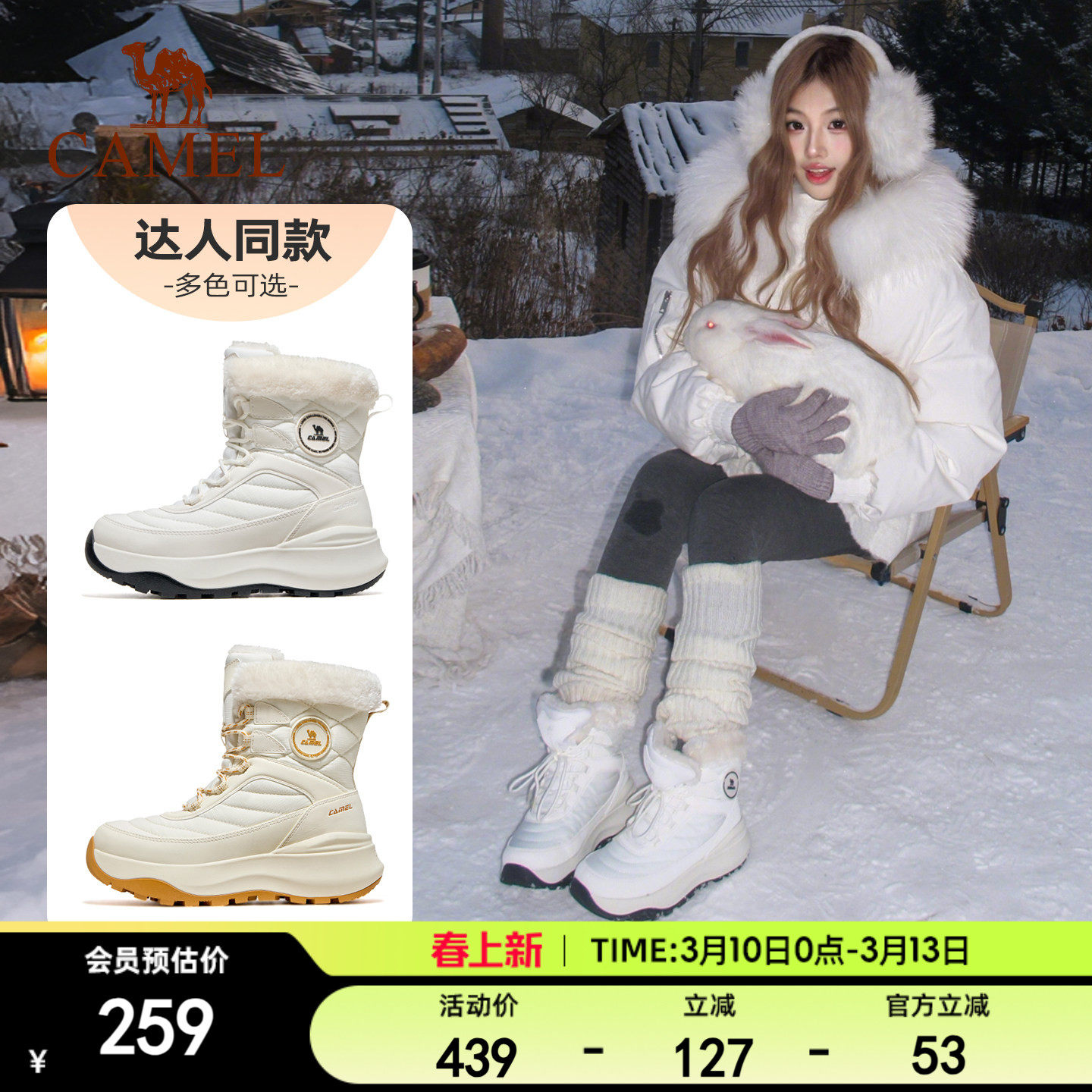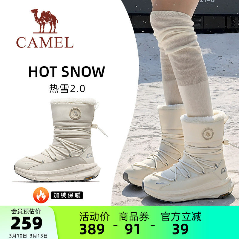 骆驼热雪2.0运动鞋冬季户外雪地靴高帮女鞋防滑防水加绒保暖棉鞋