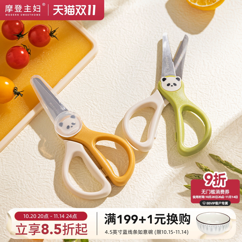 摩登主妇熊猫辅食小剪刀食品级不锈钢儿童婴儿宝宝专用厨房食物剪