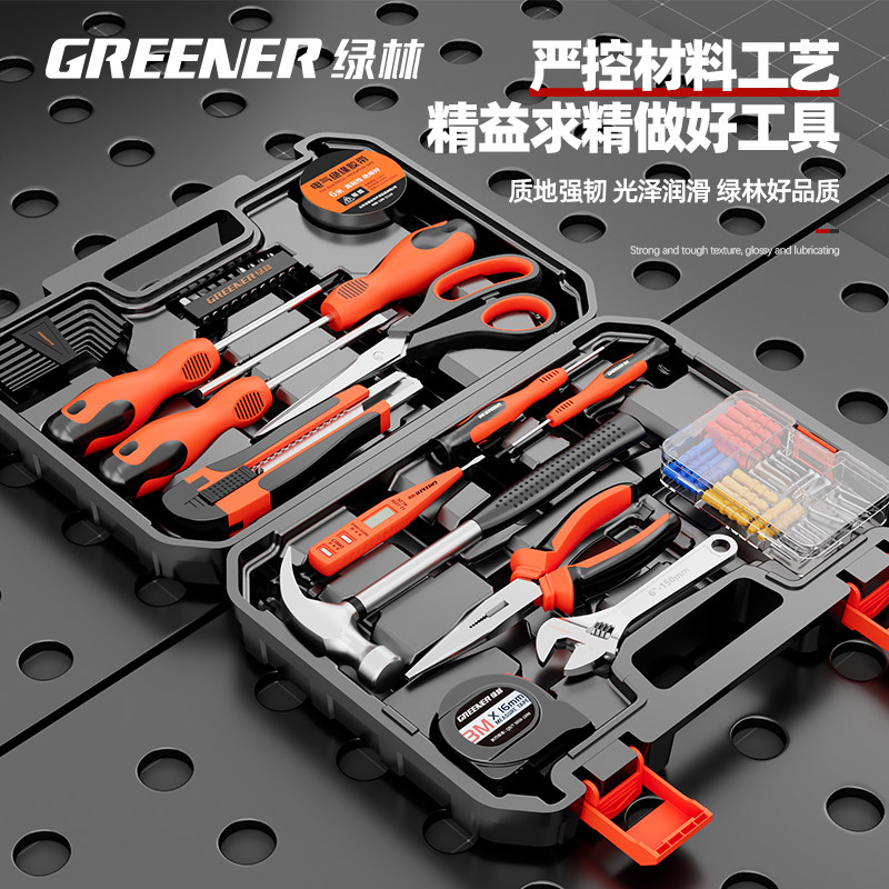 绿林五金家用工具箱套装多功能五金车载家庭组合小型电工维修全套