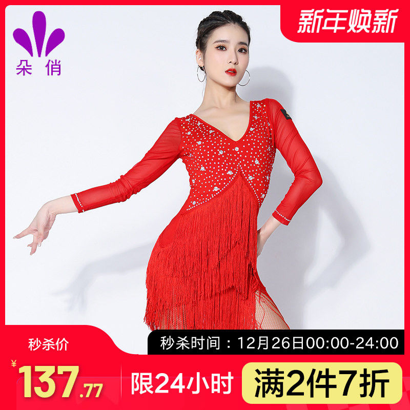朵俏拉丁舞连衣裙女性感流苏成人舞蹈服秋季新款长袖专业比赛服装