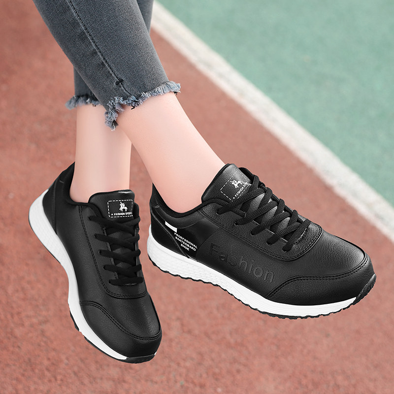 女鞋运动鞋女春秋皮面防水跑步鞋轻便防滑软底平底学生休闲鞋波鞋
