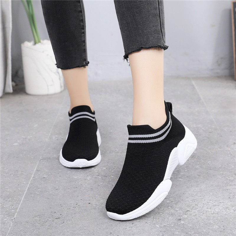 秋季新款弹力袜子鞋低帮平底运动休闲女鞋飞织透气旅游跑步学生鞋