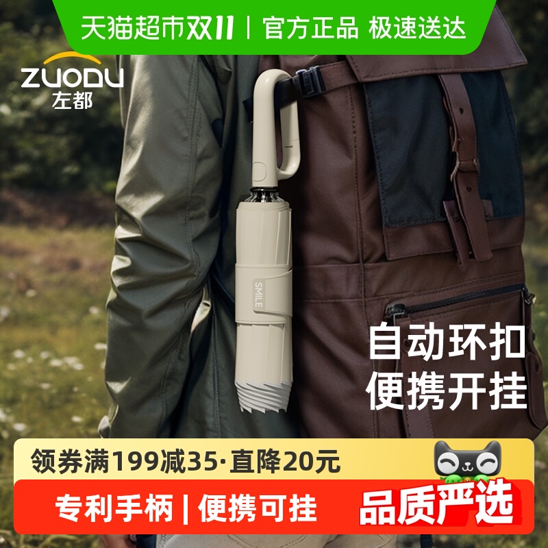 左都全自动环扣雨伞反向女加大加厚加固晴雨两用折叠学生上学专用